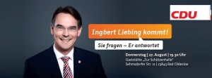 Wir laden Sie ein mit unserem CDU Landesvorsitzenden Ingbert Liebing, MdB, ins Gespräch zu kommen. Unter dem Motto „Sie fragen – Er antwortet“ sollen Ihre Fragen, Anliegen, Kritik und Anregungen im Vordergrund stehen.